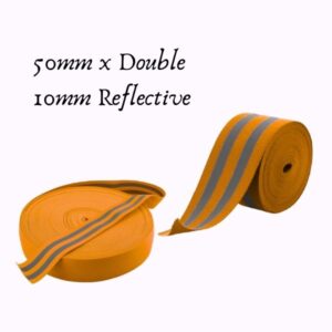 Boost your visibility during outdoor activities with our Fluorescent Elastic 50mm Double Reflective Hi-Viz Strip. Available in fluorescent pink, yellow, or orange, this strip features double reflective surfaces that ensure you remain visible in low-light environments. Perfect for cyclists, runners, and outdoor enthusiasts, this strip enhances safety by increasing visibility from all angles.